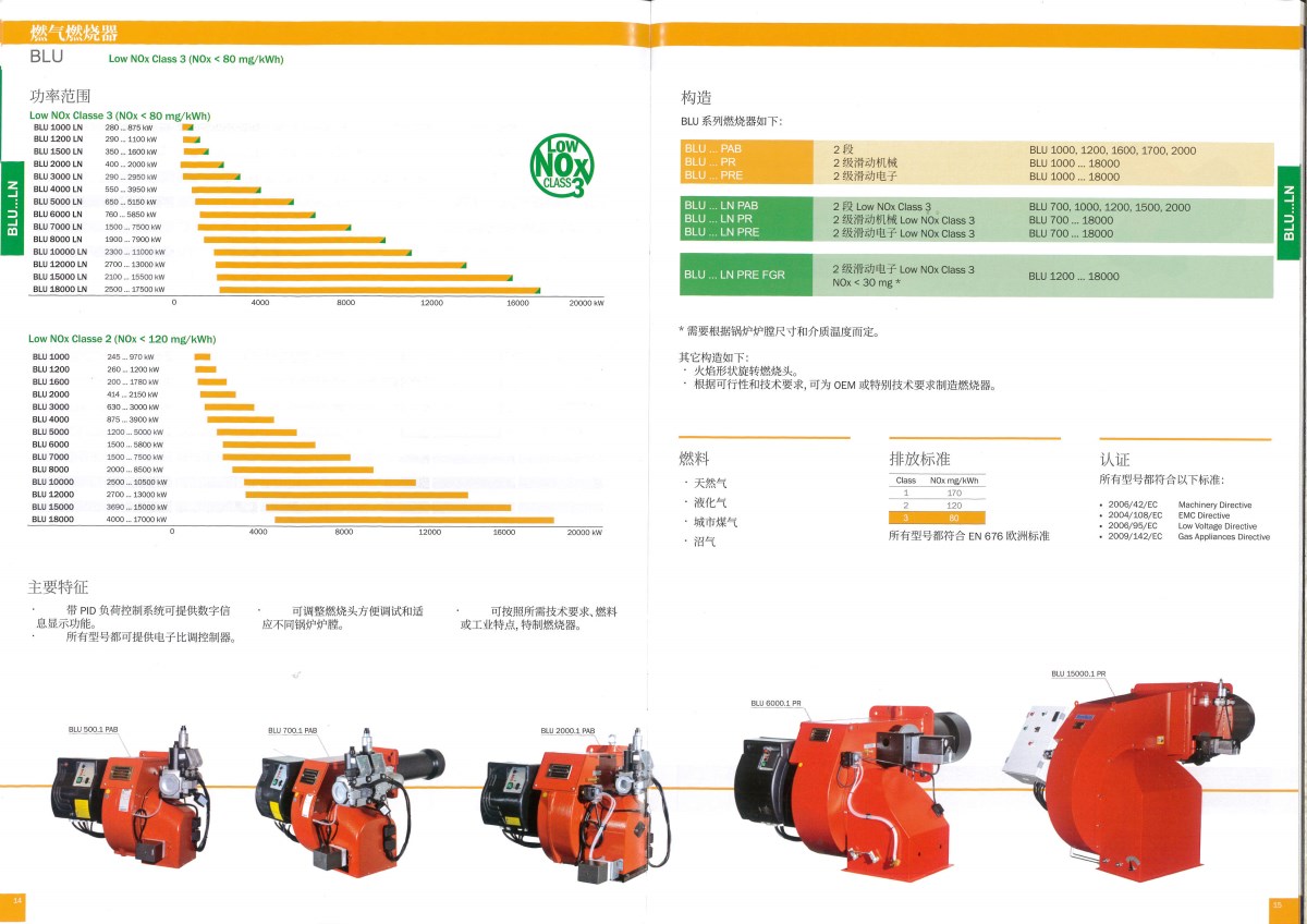 主要特征: 1、帶PID負(fù)荷控制系統(tǒng)可提供數(shù)字信息顯示功能;所有型號(hào)都可提供電子比調(diào)控制器。 2、可調(diào)整燃燒頭方便調(diào)試和適應(yīng)不同鍋爐爐膛。 3、可按照所需技術(shù)要求、燃料或工業(yè)特點(diǎn),特制燃燒器。 4、適用燃料為:天然氣、液化氣、城市煤氣